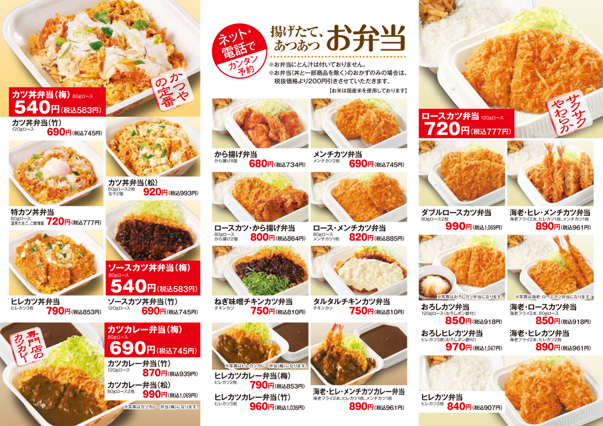 ※お弁当(丼と一部商品を除く)のおかずのみの場合は、税抜価格より200円引きさせていただきます。